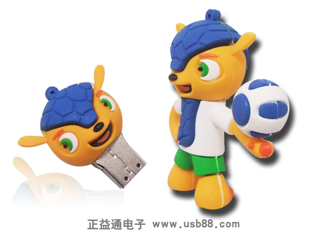 2014世界杯吉祥物是巴西的瀕危動物三色犰狳,并決定將fuleco確定為2014年世界杯吉祥物的官方名稱。而這款硅膠U盤外形就是按照今年世界杯吉祥物的外觀打造,無比可愛。